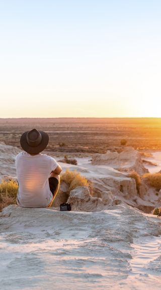 A trip to the surreal beauty of Mungo National Park is a classic outback experience. Home to Mungo Man and Mungo Lady – the famous remains of people cremated here about 42,000 years ago – this land of dunes, mallee and dried-up lakes has a rich Aboriginal history. You can learn all about it as you join a National Parks Aboriginal ranger to discover the otherworldly landscape known as the Walls of China.