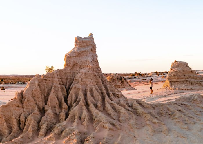 A site with deep significance is Mungo National Park. With Mungo Aboriginal Discovery Tours you can hear the moving story behind the 2017 repatriation of the 42,000-year-old remains of Mungo Man – and Mungo Lady in 1992 – to his UNESCO World Heritage-listed home with a Paakantyi, Ngiyampaa or Mutthi ranger, the three Indigenous groups of the Willandra Lakes region.