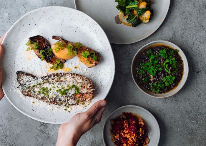 Frida’s Field is another rural retreat, set on a 120-acre regenerative farm around 20 minutes from Byron Bay. They serve communal-style long lunches every Friday to Sunday using produce from their own fields or drop in for Saturday evening snacks and sundowners over summer. There’s a dedicated disabled carpark right by the entrance, wheelchair access throughout and an accessible bathroom.Â