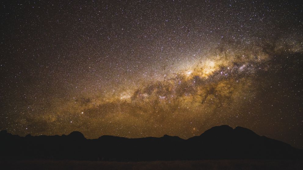 The starry Milky Way above the volcanic silhouette, Warrumbungles