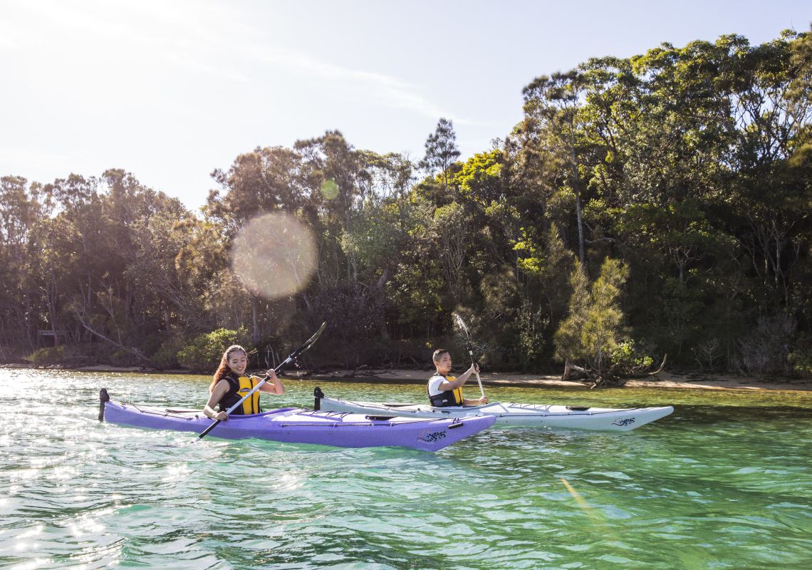 If you prefer to travel under your own steam, try kayaking along the Clarence Valley Canoe and Kayak Trail – it stretches for almost 200km and ranges from calm waters to whitewater rapids. There are more kayaking adventures to enjoy on the Nymboida River near Coffs Harbour, the Minnamurra River near Kiama, in Barrington Tops, and on the Myall Lakes near Forster, or try ocean kayaking off the coast in the Cape Byron Marine Park.