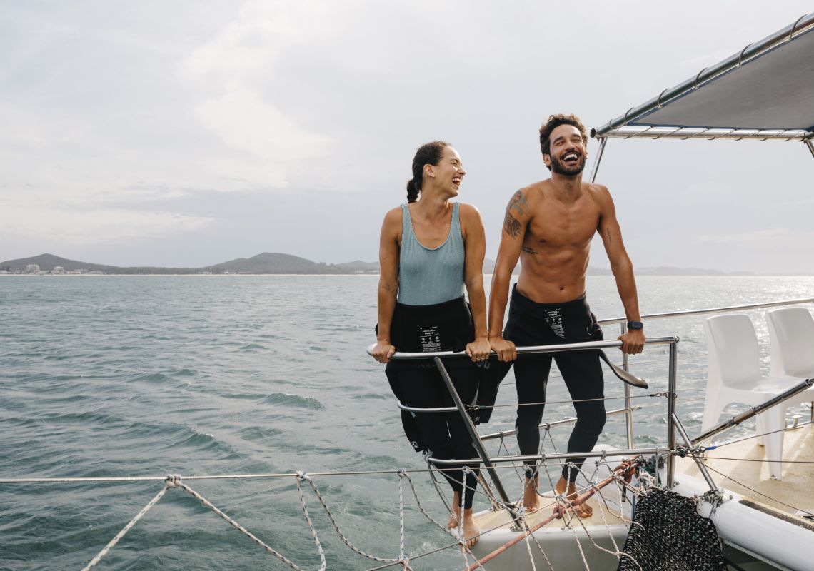 Couple enjoying a luxury private chartered yacht experience with Blue Water Sailing in Nelson Bay, Port Stephens