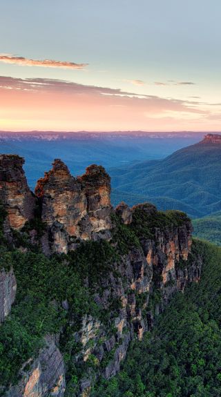 Sunrise over the Three Sisters and Mount Solitary in the Blue Mountains National Park, Katoomba